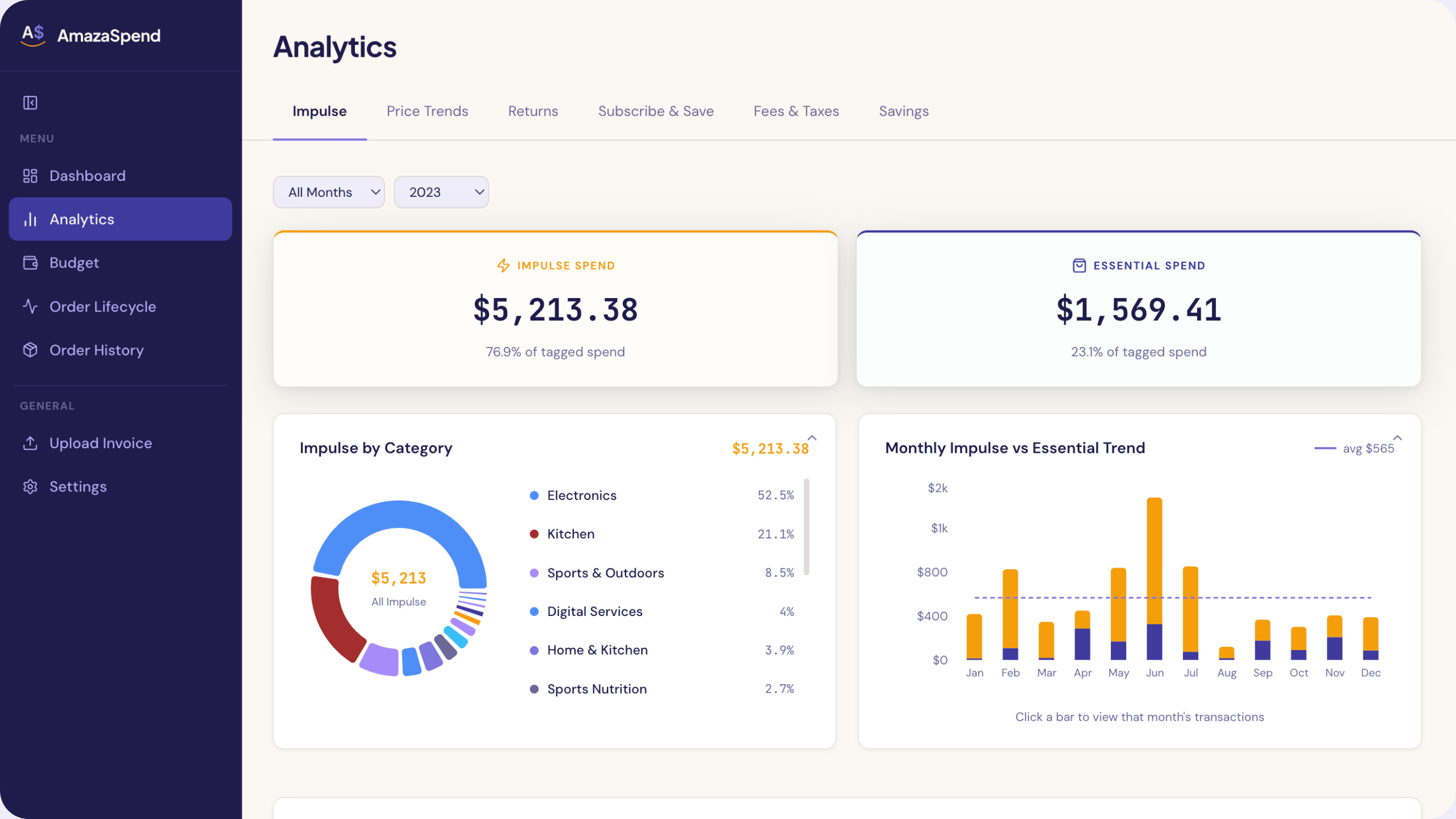 Amazon makes it easy to buy. AmazaSpend makes it impossible to ignore where it all goes.